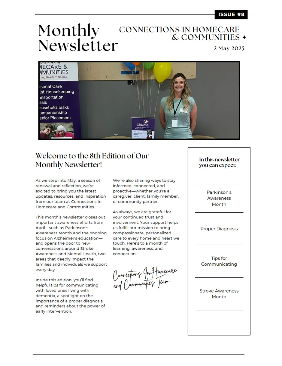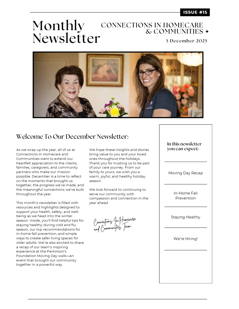 We are thrilled to announce that Connections In Homecare and Communities is launching a monthly newsletter! As a valued part of our community, we are excited to stay in touch and keep you updated on our latest news, resources, and developments.